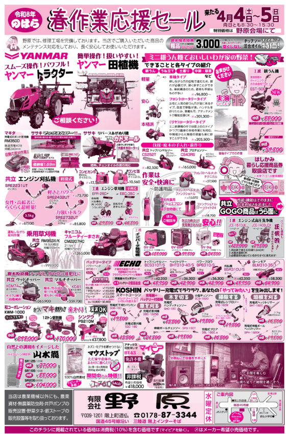 4/4(土)&5(日)の二日間「春作業応援セール」開催